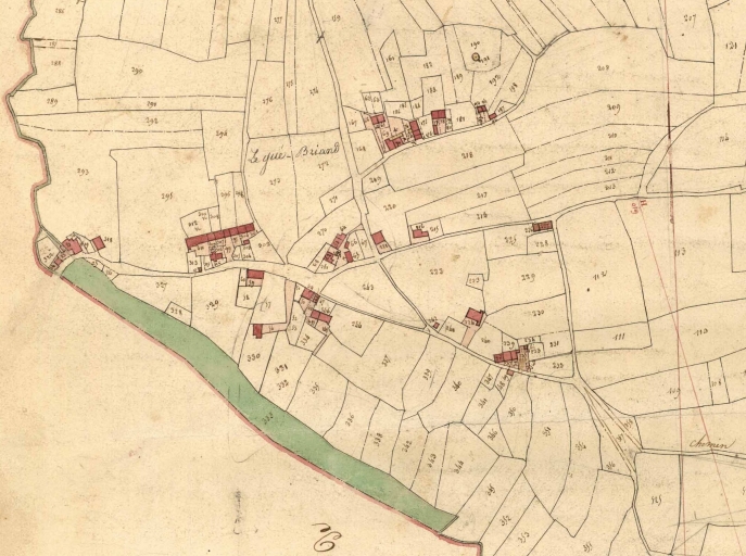 Ille-et-Vilaine. Commune de Tressé. Plan cadastral dit "napoléonien". Section A dite du Gué Briand, 2ème feuille, plan cadastral napoléonien, par M. Legionnel, géomètre, 1826, échelle : 1/2 500ème (A.D. Ille-et-Vilaine : 3 P 5567).