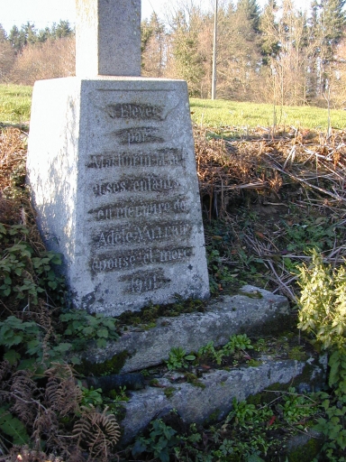 Croix de chemin élevée en ex-voto par des particuliers sur leur parcelle. Le socle porte, gravée, l'inscription suivante : Elevée/par/Mathurin MAILLE/et ses enfants/en mémoire de/Adèle VALLERIE/épouse et mère/1901.