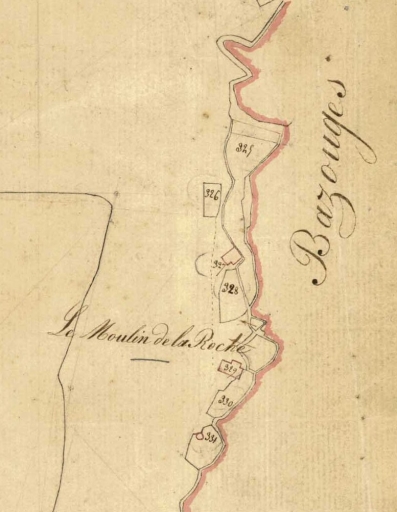 Le moulin de la Roche est le plus anciennement attesté, ce que confirme la cheminée du XVe siècle que l'on peut encore y voir, semblable à celles de la tour du château tout proche.