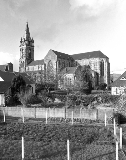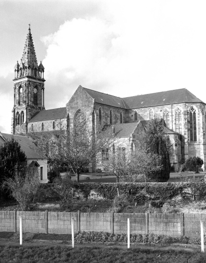 Église construite à l'emplacement d' un ancien édifice remontant pour la partie la plus ancienne à l'époque romane. Église actuelle commencée en 1859, sur les plans de l'architecte Charles Langlois (tour et nef) puis terminée entre 1881 et 1883 sur les plans de l'architecte Arthur Regnault (transept et abside), chapiteaux sculptés de Francis Cottard (date et attribution par source).