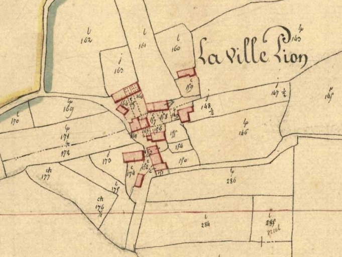 L'écart de la Ville Pion est cité comme l'un des plus importants de la commune par Marteville et Varin, successeurs de Jean-Baptiste Ogée au milieu du 19e siècle. Il conserve sa morphologie et un habitat ancien dense souvent remanié.