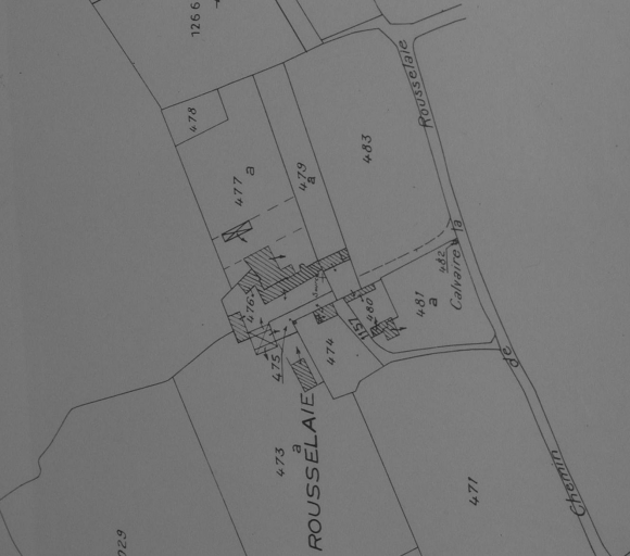 Les textes ne mentionnent aucun manoir à la Rousselais. Le logis secondaire, daté 1604, possède pourtant l'un des principaux symboles de l'architecture nobiliaire : une belle tour d'escalier hors-oeuvre en façade postérieure nord. Caractéristique de l'évolution de l'habitat rural, la ferme de Rousselais est composée de plusieurs bâtiments construits entre le début du 17e siècle et la fin du 19e siècle. Près de trois siècles d'histoire réunissent trois habitations. L'actuel logis de ferme fut construit à la fin du 19e siècle par le même commanditaire que ceux de la Gaudinais et de la Ville Amaury. Ces trois habitations furent bâties sur le même modèle. dont l'actuelle remonte aux années 1890. Le logis secondaire daté 1604 est la plus intéressante. Bien qu'aucun texte ne mentionne de manoir à cet endroit, il possède l'un des principaux symboles de l'architecture nobiliaire : une belle tour d'escalier hors-oeuvre. Accolé à celui-ci, l'imposant édifice aujourd'hui entièrement transformé en étables est datable du 18e siècle. Il ne conserve plus aucune trace de logis. Il a subi une surélévation dans la 2e moitié du 20e siècle pour accroître l'espace de stockage. D'autres dépendances ont été bâties au 20e siècle.