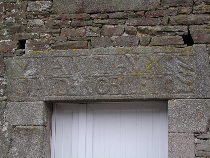 Les murs sont en moellons de granite et grès, les encadrements des baies en pierre de taille de granite, la couverture en ardoise. Le linteau de la porte d'entrée de la façade antérieure (nord) porte l'inscription : "M : LANFLAVX : / CLAUDENOBILET : / 1674". Le linteau de la cheminée du rez-de-chaussée (pignon est) est gravé d'un coeur entouré de deux roues, le tout est surmonté du sigle IHS.