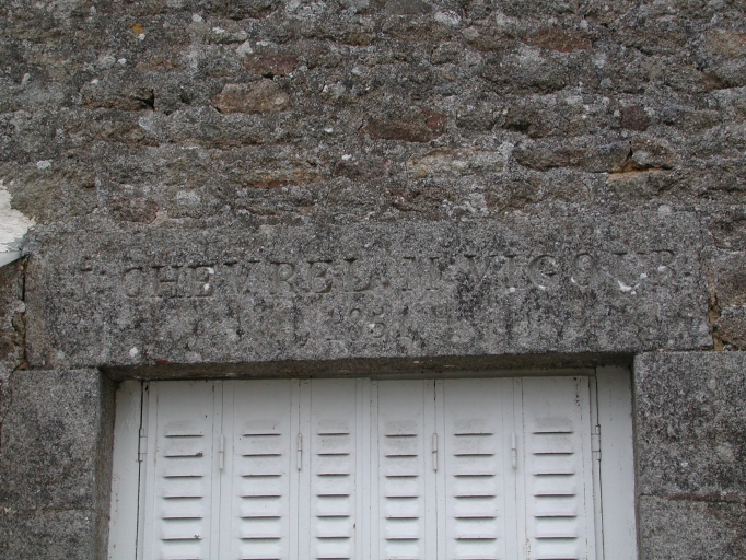 Les murs sont en moellons de granite, les encadrements des baies en pierre de taille de granite. La couverture est en ardoise. Le linteau de la porte d'entrée de la façade antérieure sud porte l'inscription : "F : CHEVREL.M : VIGOUR / 1851".