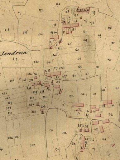 Feuille cadastrale de la section F1 dite du Poirier, par Beuschet géomètre, [s.d.], échelle 1/2500e (A. D. d'Ille-et-Vilaine).