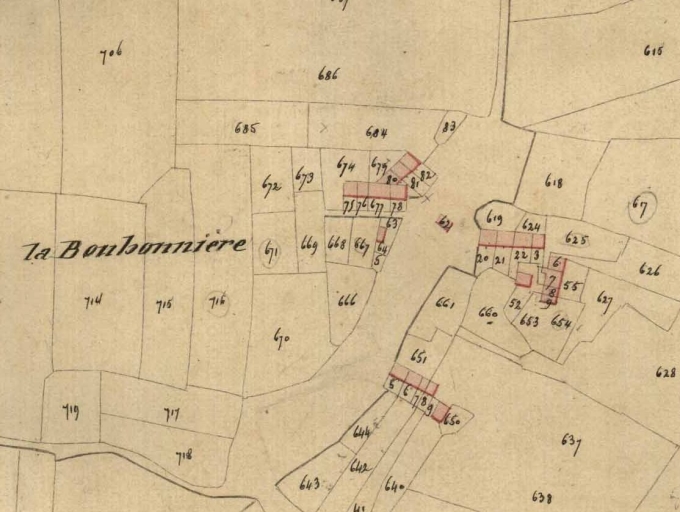 Ouvrage du 2e quart du 17e siècle portant sur le linteau d'une cheminée au rez-de-chaussée l'inscription concernant son commanditaire IHS 1644 / IV HO. La ferme a été remaniée en 1850. Selon un témoignage oral, l'ancienne couverture était en tuiles plates de fabrication artisanale ; il existait dans la parcelle au devant de la maison un ancien four à briques et à tuiles.