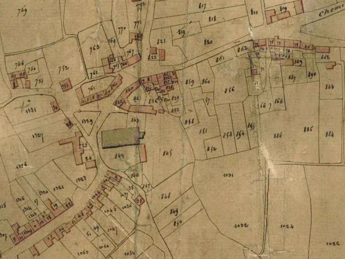 Feuille cadastrale de la section D3 dite de la Ville, par Souchet du Ranquin géomètre, [s.d.], échelle 1/2500e (A. D. d'Ille-et-Vilaine).