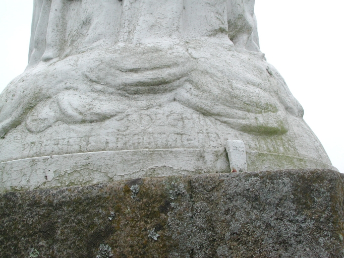 La statue s'élève à l'emplacement de l'ancien cimetière figuré sur le cadastre de 1824, parcelle 201. Inscription sur le piédestal : MISSION 1930 ; la statue en fonte de fer porte la signature du sculpteur J. Dechin et une marque illisible.