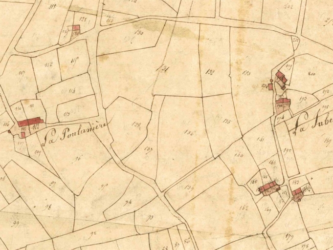 Feuille cadastrale de la section A1 dite d'Issaugouëtte, par Corbes géomètre, [1824], échelle 1/2500e (A. D. d'Ille-et-Vilaine : 3 P 5415).