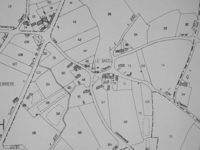 Le village du Gacel est l'un des trois écarts recensés sur la commune. Il est présenté comme l'un des principaux hameaux de Saint-Péran au milieu du 19e siècle par Marteville et Varin, continuateurs de Jean-Baptiste Ogée. Le bâti ancien a été conservé en grande majorité mais il est largement rénové. Le mode de circulation du début du 19e siècle a également été conservé.