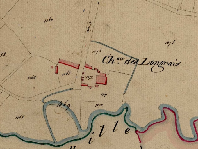 Les travaux historiques de M.M. Piel et Aubin indiquent que le château des Longrais fut construit, sur le site d'un ancien domaine, au début du 18e siècle, tandis que les dépendances furent bâties au milieu du 19e siècle. D'après une carte postale ancienne, le bâtiment principal a été remanié au cours du 2e quart du 19e siècle. L'étude de M. Nourry mentionne que les frères Bühler sont intervenus dans l'aménagement du jardin. L'ancienne ferme est aujourd'hui fortement remaniée. Cet ensemble, qui n'a pu être visité, mérite une étude.