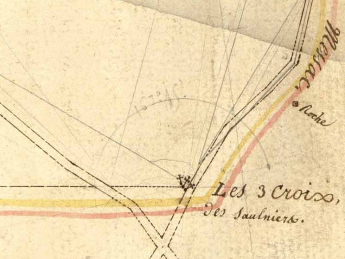Le cadastre levé en 1823 mentionne quelques trente trois croix dressées le plus souvent au bord des chemins, sur un carrefour de voies ou encore sur le placître des sanctuaires, comme celle du cimetière paroissial ou près la chapelle de Besnard. Sur ce nombre impressionnant, seuls trois édicules sont conservés à leur emplacement originel : la Croix Jumelle au bourg, la croix de Mérignac, et une croix isolée à la limite de Plélan, au sud du Bignon de Pennée. Trois ou quatre autres croix anciennes ont été manifestement déplacées : la croix de la Bouënardais (auparavant au bord d'une route près du lieu dit la Secouette), la croix de Montafilan (probablement près du Tertre à l'origine), et la croix de Gabriel Bégace (provenant sans doute de la Pironnais), et peut être la croix de Lantu (à l'occasion d'une restauration en 1843 ?). Enfin deux croix modernes sont aujourd'hui sur l'emplacement d'anciennes croix qu'elles auraient remplacées : la croix du Bois David et la croix du Bignonet (près la Goupillais). Le bilan est éloquent, vingt-sept croix ont disparue entre 1823 et l'an 2002, soit un taux équivalent à 80% du corpus.