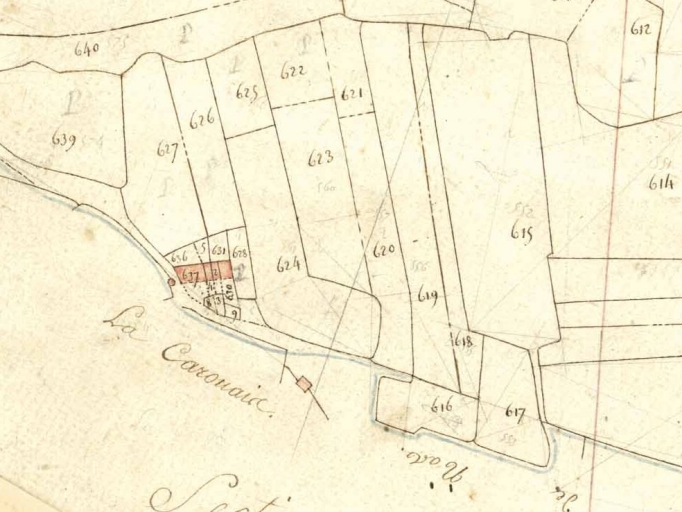 Plan cadastral napoléonien. Section F de la HANTARDAIS, 1ère feuille Levée Par Mr. Jh. Colliot, Géomètre. Échelle 1/2.500 mètres.