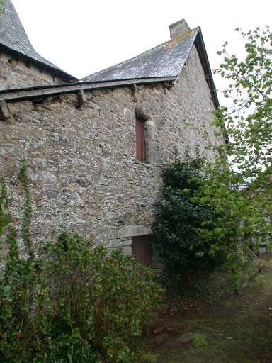 Tour d'escalier arrière hors oeuvre recouverte d'une toiture en pavillon. Encadrement des ouvertures en pierre de taille de schiste et en pierre de taille de calcaire.Parties agricoles en moellons de schiste et terre.