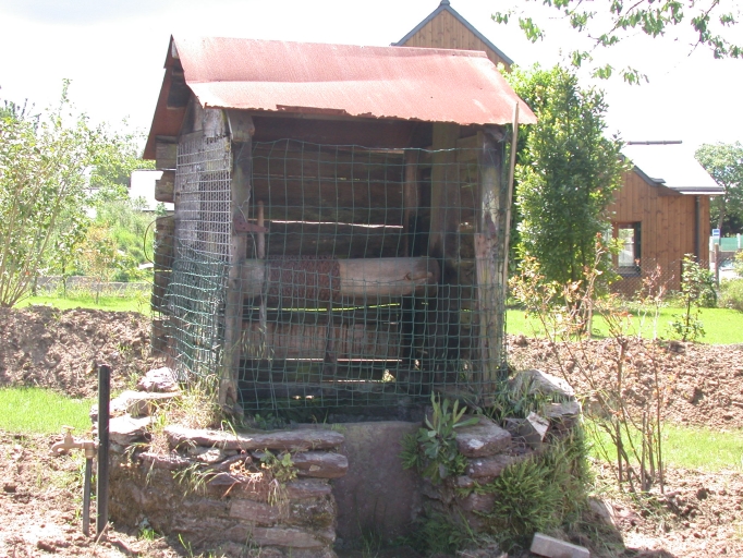 Plan allongé. Appentis arrière. Gros oeuvre en terre sur un solin de schiste. Fenêtre avec linteau de bois et pièce de bois pour l'installation des huisseries.
