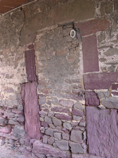 Gros oeuvre en moellons de schiste. Bandeau en pierre de taille de schiste.Baies de l'étage avec encadremements de brique.