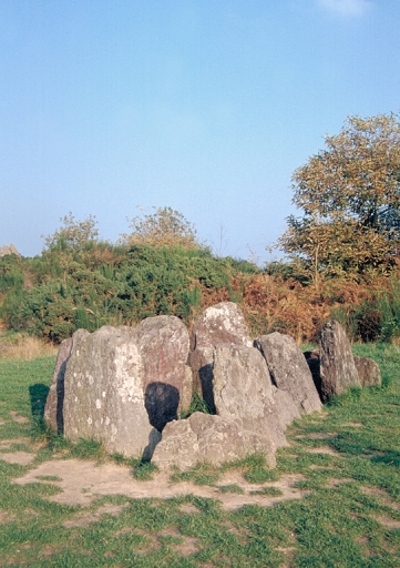 Sépulture collective néolithique entouré d'un cairn -enfoui- en dalles de schiste daté de 3500 à 2500 avant Jésus Christ.