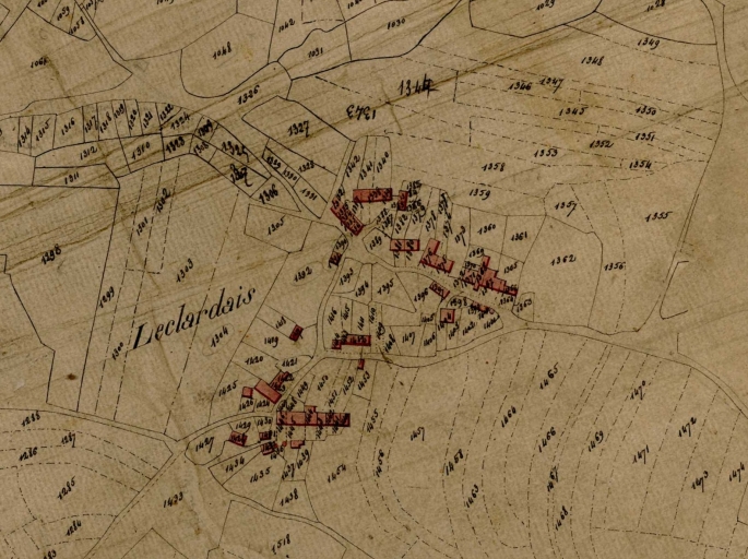 Ille-et-Vilaine. Commune de Plélan-le-Grand. Plan cadastral dit "napoléonien". Section H dite de Leclardais, 3ème feuille, plan cadastral, 1823, échelle : 1/2 500ème (A.D. Ille-et-Vilaine : 3 P 5449).