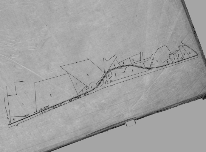 Ille-et-Vilaine. Commune de Plélan-le-Grand. Plan cadastral dit "napoléonien". Section A dite de la Vieille-Ville, 1ère feuille, calque des voies de communication, plan cadastral, [début 20e siècle], échelle : 1/2 500ème (A.D. Ille-et-Vilaine : 3 P 5449).