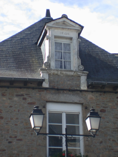 Maison importante du centre bourg dont la façade latérale donne sur la place de l'Eglise. Elle remonte pour sa partie la plus ancienne au début du 17e siècle (voir porte en anse de panier murée et fenêtres à chanfreins). Elle a été modifiée au début du 18e siècle. De cette époque date la seconde porte qui fait aujourd'hui office de fenêtre. La lucarne en pierre de taille de calcaire porte la date de 1704. Le soin apporté à l'ornementation de celle-ci indique un logis de notable. Le rez-de-chaussée a été aménagé en partie commerciale.