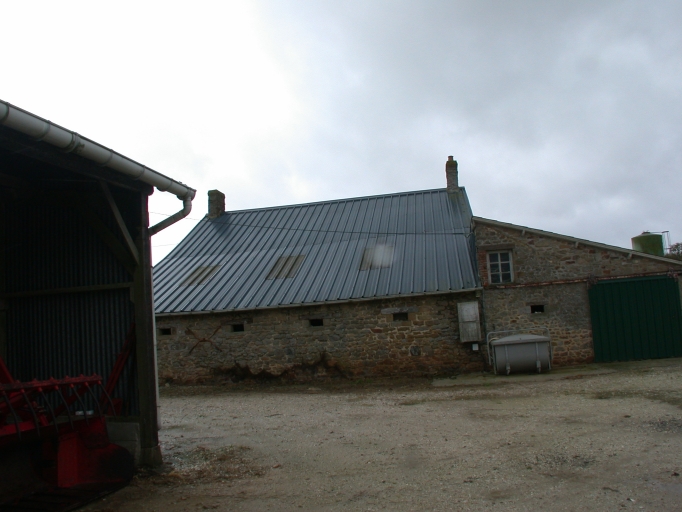 Logis de plan allongé à 5 travées. Il est composé d'un étage surélevé d'un étage de comble. Toit à longs pans et croupe. Epi de faîtage. Girouette. La ferme adjacente est en moellons de granite. Les encadrements des baies sont en brique.