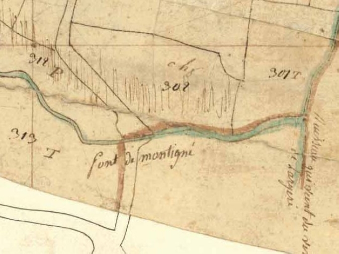 Plan cadastral napoléonien Plan Geometrique de la section D dite du Menil En trois Feuilles 1ère Feuille Terminé En aout 1810. A. Lefevre ingenieur Geomètre verificateur du cadastre du Departement. Pierre Jallu. Maire. F : Le Breton Géomètre. Echelle d..