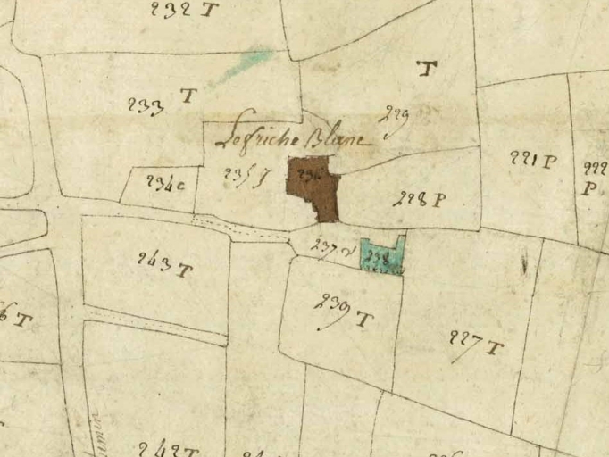 Plan cadastral napoléonien Plan Geometrique de la section B dite de Tesniere Terminé En aout 1810. A. Lefevre ingenieur Geomètre Verificateur du Departement. Pierre Jallu. Maire. F : Le Breton Géomètre. Echelle de 1 à 2.500.