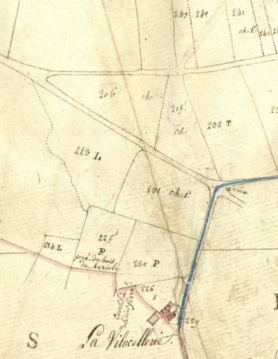 Plan cadastral napoléonien Domalain Section H1 dite de Mongerheux En deux Feuilles 1re Feuille. Par Mr.Lesné Géomètre. Echelle 1 à 2500, sans date (1810)..