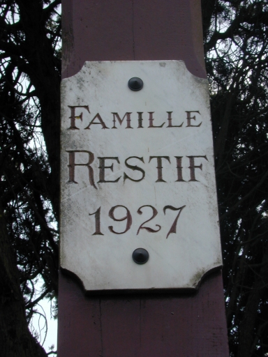 Cette croix monumentale a été érigée en ex-voto par des particuliers comme l'atteste la plaque portant l'inscription suivante : FAMILLE/RESTIF/1927.