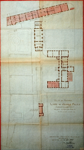[1925]. Lycée de jeunes filles. Agrandissement. Plan d'ensemble, dessin par Emmanuel Le Ray, 1925 (A. C. Rennes).