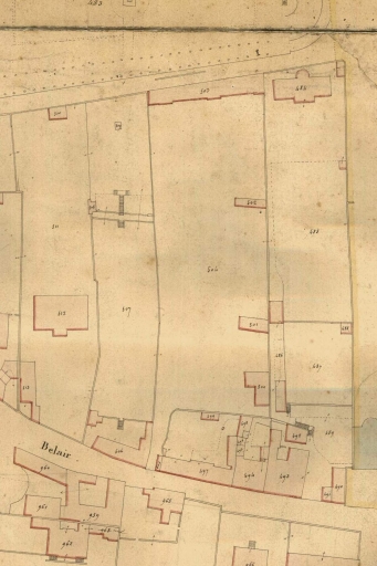 [1842]. Plan cadastral parcellaire de la commune de Rennes. Section B, dite du Palais, 2e feuille, dessin, Jouchel du Ranquin, Roger, Viel, Ferré et Simon géomètres, 1842 (A. D. Ille-et-Vilaine).