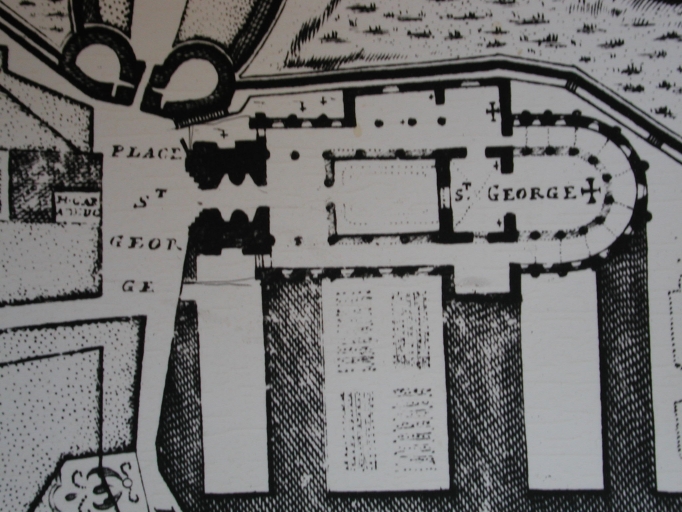 [1900 ca.). L'abbaye Saint-Georges, photographie par Le Couturier, début 20e siècle (A. D. Ille-etVilaine ; 8 Fi 73).