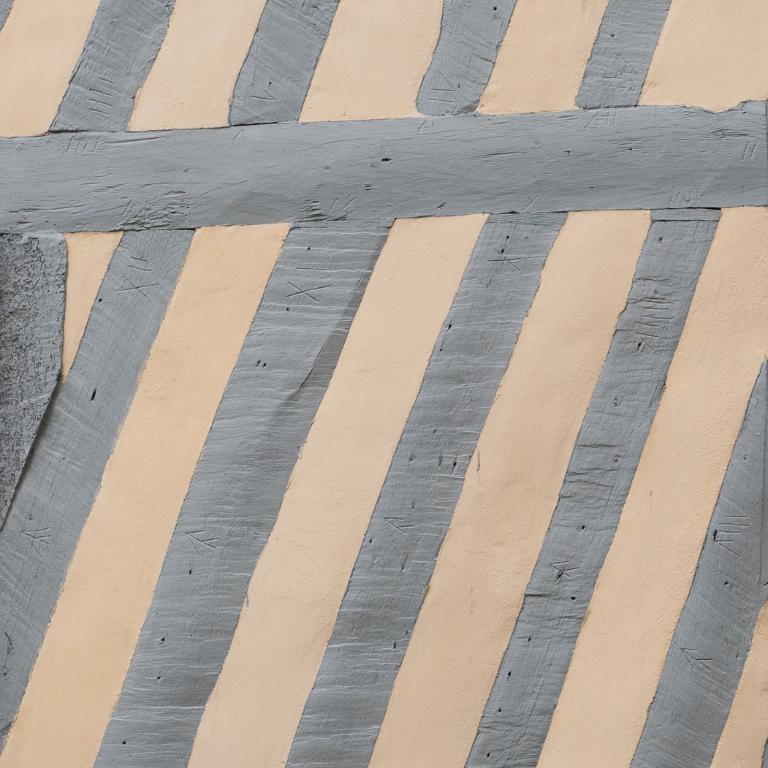 Maison économique en pan de bois 2 pièces sur vide sanitaire (Pain charp., 1935) rue Le Coz (voir lotissement de Courcy).