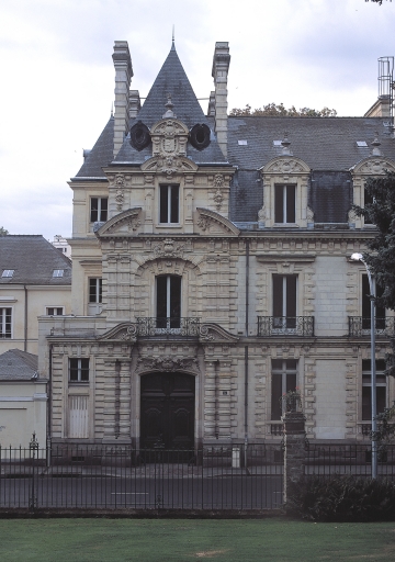 Hôtel implanté en parcelle traversante à l´alignement de la voie. Le passage cocher latéral est prolongé par une rampe rachetant la pente du terrain (fig. 2) et donnant accès aux remises. Construit en calcaire appareillé en pierre de taille (façade sur rue) et en moellons de schiste masqués par un enduit (façade sur cour) et couvert d´ardoises, le corps de logis compte un étage carré et un étage de comble sur rez-de-chaussée surélevé et étage de soubassement. Il présente une élévation sur rue à 7 travées avec une travée majeure désaxée au niveau du passage cocher, qui habille un pavillon en légère saillie. Une plaque de marbre fixée dans le passage (fig. 4) porte l´inscription : CONSTRUIT EN 1880 PAR AMAND LEON DES ORMEAUX - JB MARTENOT ARCHITECTE.