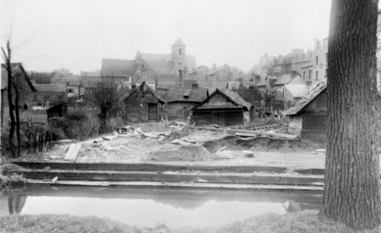 [1910 ca]. Le canal d'Ille-et-Rance et la tannerie, photographie, par Le Couturier, 1er quart 20e siècle (A. D. Ille-et-Vilaine ; 8 Fi 380).