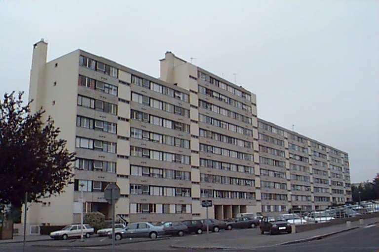 - PINTE Ensemble d'immeubles barre, ici à fenêtre urbaine, dont la composition souscrit à l'affirmation du réseau au détriment de la concertation.