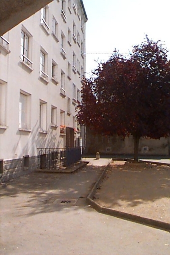 - PHYPO Immeuble de plan en V avec corps central de 5 étages formant corps de passage et deux ailes de 4 étages avec passage latéral traversant à l'est. Les accès aux cages d'escalier s'effectuent depuis le corps de passage central, et depuis la cour en coeur de parcelle pour les deux ailes.