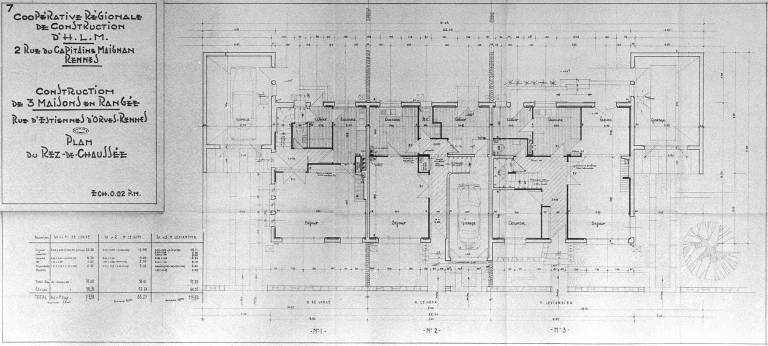 Plan du rez-de-chausée, dessin, par Henry Auffret et J. Vaudeleau, 1957 (A. C. Rennes).