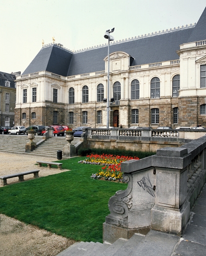 La place-parvis qui précède traditionnellement l´église ou un monument public, dont les places Saint-Melaine et Honoré-Commereuc offrent des exemples.
