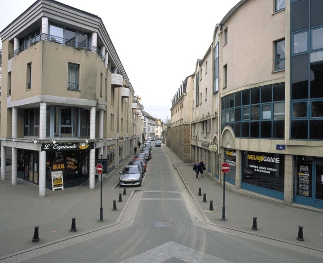 - PINTE La rue de Dinan constitue encore partiellement l'épine dorsale d'un secteur marginal situé aux abords de la ville. Son rôle de voie de communication entraîne une implantation clairsemée du bâti, sauf au niveau de l'ancienne église Saint-Etienne. La rive Est est actuellement entièrement évidée des traces de son occupation d'origine depuis l'ancienne église paroissiale jusqu'au pont Saint-Martin (à l'exception d'une dépendance transformée en maison à l'angle de la rue Gaston Tardif). Le percement de la rue Legraverend aura contribué à marginaliser toute la partie nord peu à peu déstructurée et reconstruite. La rive Ouest, occupée par des établissements industriels au 19e siècle, ne conserve que des traces ponctuelles d'habitat antérieur au 18e siècle. Cet axe qui n'est pas devenu un faubourg, n'a pu assurer sa connexion avec la ville au 19e siècle et reste aujourd'hui en arrière-plan du centre-ville dont il est cependant si proche.