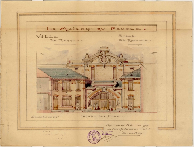 En 1919, la ville vote la construction de la maison du peuple, dont Emmanuel Le Ray est chargé d´élaborer les plans, présentés au conseil municipal par le maire (annexe).