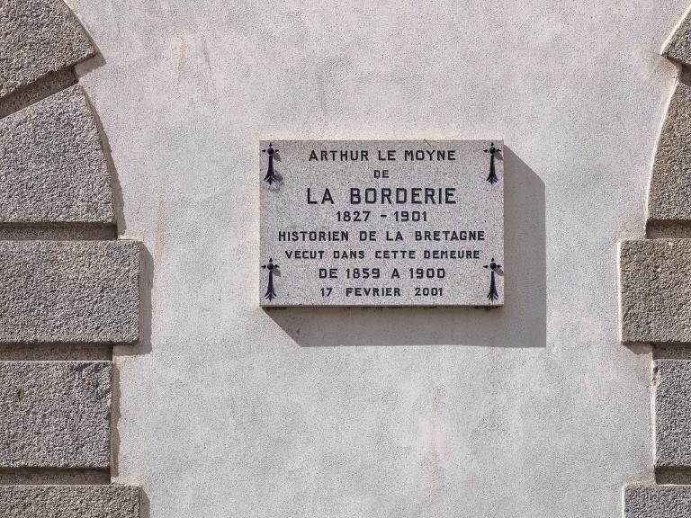 Selon les travaux de Jean-Yves Veillard, cet hôtel est construit vers 1846-1848 pour M. de la Bigne-Villeneuve, sur les plans de l'architecte Charles Langlois. Par mariage, l’hôtel devient pendant la seconde moitié du 19e siècle la demeure de l’historien et archiviste Arthur Le Moyne de La Borderie, membre fondateur de la Société archéologique et historique d'Ille-et-Vilaine. Député catholique monarchiste de Vitré de 1871 à 1876, ce dernier est aussi l'auteur d'un rapport d’enquête parlementaire sur l’affaire du Camp de Conlie lors de la guerre franco-prussienne de 1870.