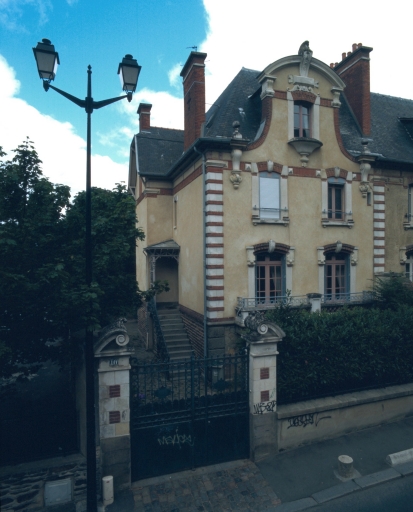 Maison de droite, appartenant à M. Logeais, agrandie en 1931 et en 1939, par l'entrepreneur Badault, sur les plans de l'architecte Guillaume, auquel on peut attribuer la conception de cette maison à deux unités d'habitation, sans doute construite vers 1910.