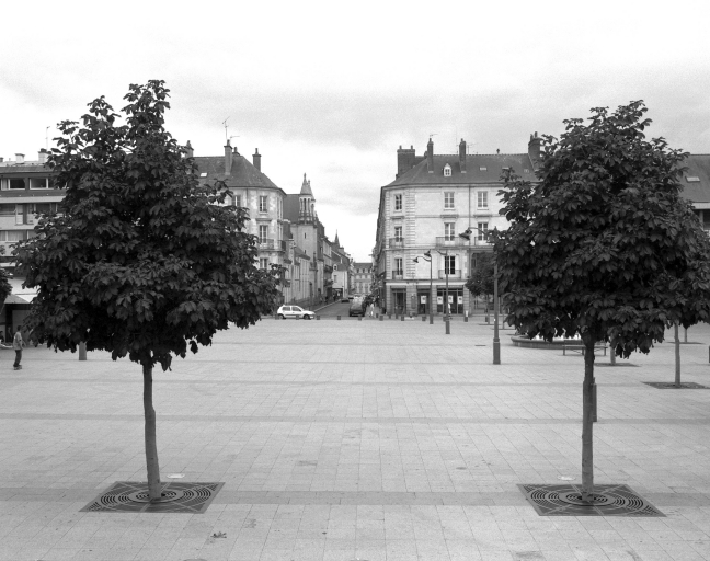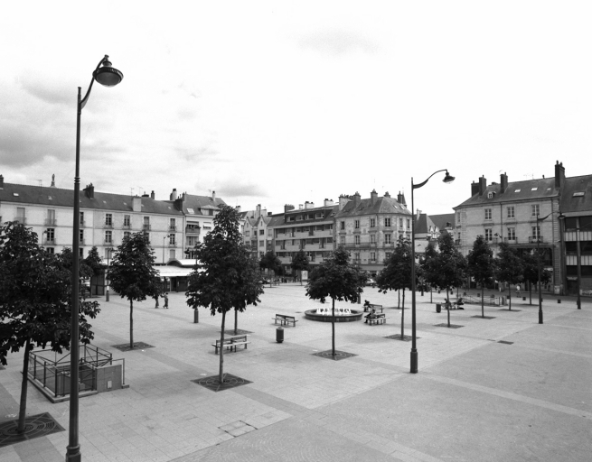 Place de plan carré ouvrant sur un réseau de rues en étoile placées aux angles, qui assurent sa liaison avec les faubourgs et la ville close. Depuis la construction du parking souterrain, la place est cernée, sur trois côtés, de rues délimitant un espace piétonnier planté et équipé d'une fontaine et de bancs publics.