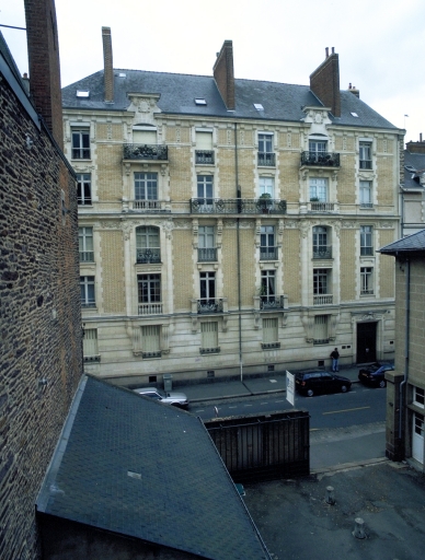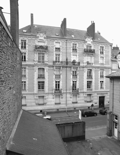 Immeuble construit en 1910, sur les plans de l'architecte rennais Eugène Guillaume pour Huchet et Ballard, aménagement d'un ascenseur en 1965, réalisé par le cabinet Perrin et Martin.