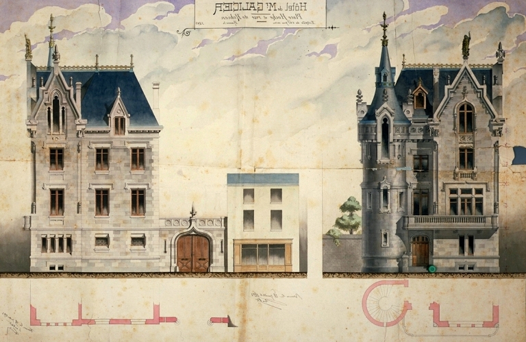 - PINTE L'hôtel Galicier est l'une des premières oeuvres connues de l'ingénieur rennais, dont il existe une variante rue Thiers. Son originalité réside dans la combinaison entre tradition et modernité. L'ingénieur répond au programme de l'hôtel particulier, qui possède ici une chapelle dans oeuvre, avec des volumes volontairement composites qui évoquent le petit château d'inspiration néogothique. A ces références savantes sont associés des matériaux modernes et préfabriqués, l'enduit en ciment et la terre cuite armée, qui s'opposent, dans leur texture comme dans leur caractère sériel, à l'unicité des matériaux nobles. On retrouve ces éléments d'architecture dans les productions rennaises de l'ingénieur, dont la clientèle est principalement composée de commerçants et d'artisans. Implanté au nord de la place, à l'angle de la rue de Robien, l'édifice traduit également l'ambiguïté de l'espace urbain dans lequel il s'inscrit, un espace résidentiel proche d'un site commerçant.