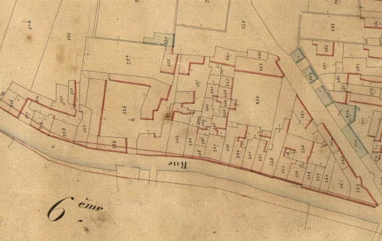 [1842]. Plan cadastral parcellaire de la commune de Rennes. Section B, dite du Palais, 2e feuille, dessin, Jouchel du Ranquin, Roger, Viel, Ferré et Simon géomètres, 1842 (A. D. Ille-et-Vilaine).