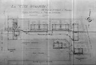 Plan masse : lotissement formé de quatre parcelles en bande, bordant une voie de desserte existante. Implantation du bâti : implantation perpendiculaire à l'aplomb de la voie et en retrait, implantation à l'aplomb de la voie. Position des jardins : en fond de parcelle et en couronne. Typologie du bâti : deux maisons élémentaires à implantation perpendiculaire, dont l'une est couverte en tuiles, et deux maisons d'étage sur garage, alignées sur rue.