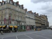 - PINTE Immeuble constituant une variante économique des immeubles à boutique et accès cocher avec une façade en moellons enduite et l'absence d'entresol surmontant la boutique. L'accès cocher était situé à l'arrière, 20 rue La Chalotais, et présente la particularité d'avoir conservé le niveau ancien en contrebas, avec un niveau de soubassement et des communs. Il s'inscrit dans la deuxième phase de construction des quais, après le percement de la rue Lanjuinais et l'aménagement de la place de Bretagne, en 1862 (projet Ange de Léon). Il s'agit à nouveau d'immeubles de 3 ou 4 étages destinés à embellir cette façade d'apparat que constituent les quais pour le secteur sud vilaine (décor sculpté : Immaculée Conception). Plusieurs architectes y installeront leur cabinet : ici celui de Danays et de Rielland, à la fin du 19e siècle, confirmant l'importance du rôle de cette façade architecturale.
