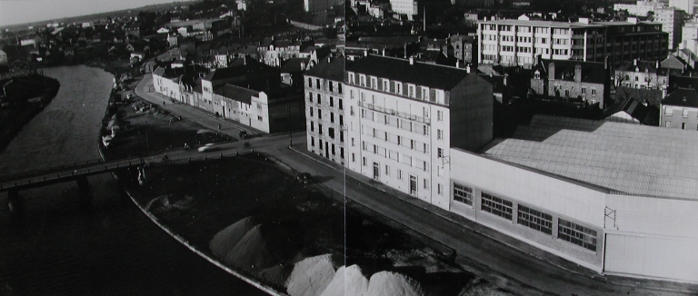 [1957 ca.]. Le quai Saint-Cyr, au niveau du pont de l'abattoir, photographie, 1957 ou 1958 (A. C. Rennes, fonds Marty).